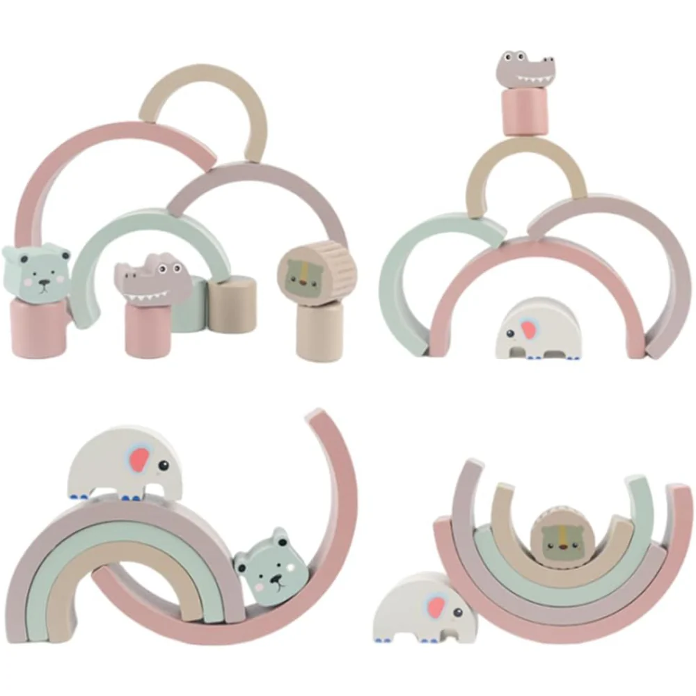 Bloques Madera Estilo Arcoiris Apilables Juguete Montessori.
